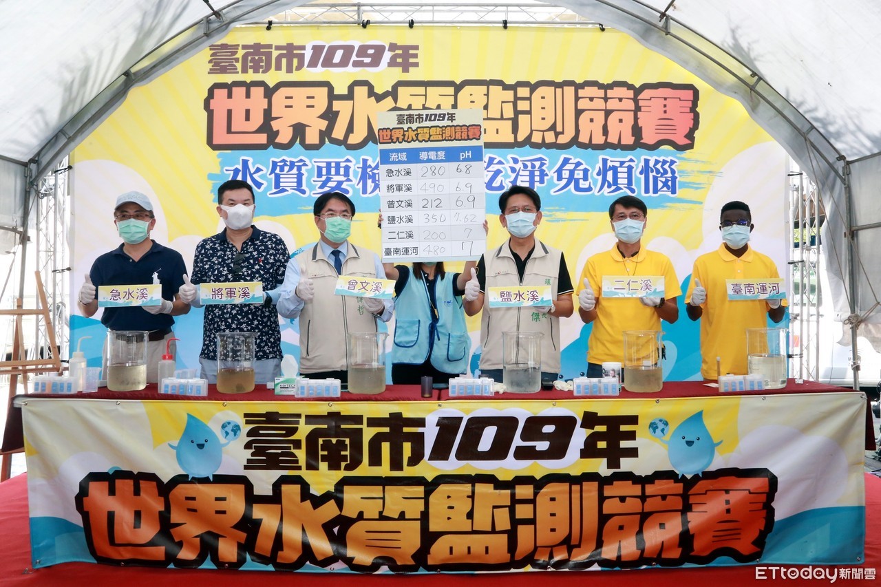 台南市2020年世界水質監測競賽活動,20日在安平亞果遊艇城盛大起跑,市長黃偉哲親自操作儀器檢測河川、海域等水質,並授旗給亞果遊艇集團董事長侯佑霖所帶領的「環保艦隊」樂活海洋學院,他肯定該集團身體力行投入環保,也期許透過公部門與大眾共同努力,讓台南市的水質愈來愈好。