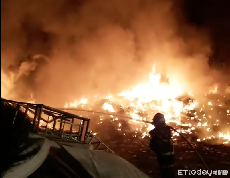 ▲斗六市江厝資源回收場位於台78線東西向快速道路旁,晚間9點半左右突然冒出熊熊烈火,延燒速度非常快。(圖/記者蔡佩旻翻攝)