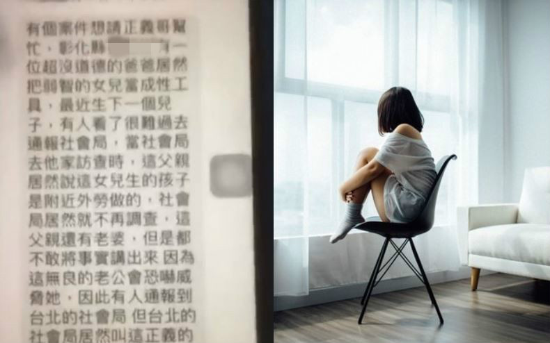 「愛心正義哥」徐奕時常關心社會弱勢議題,尤其特別關心受虐兒問題。對此,徐奕20日在臉書發文表示,接到爆料者指稱,「彰化有個爸爸把女兒當成性工具,最近生下一個兒子...父親還說孩子是附近外勞做的。」