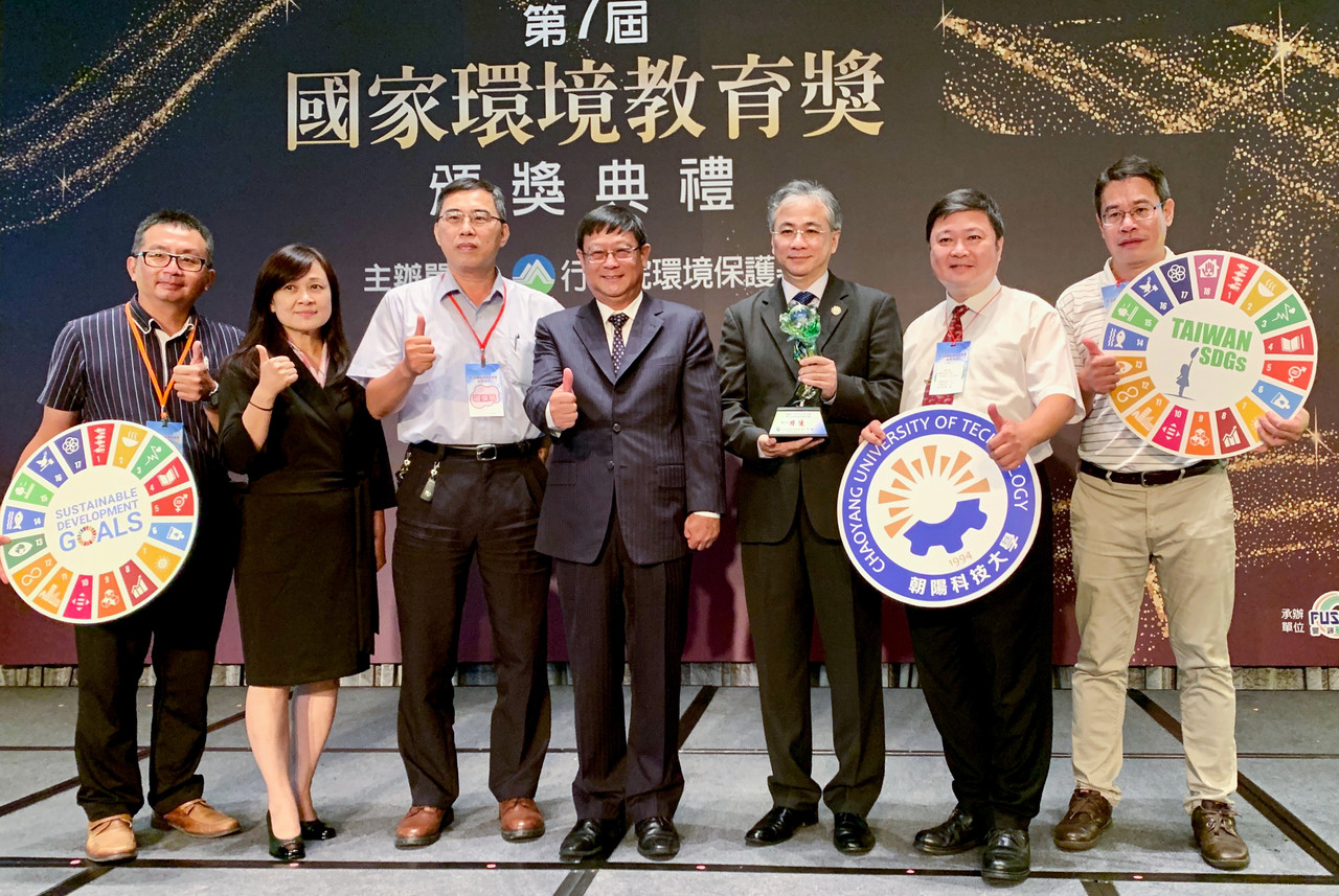 第7屆國家環境教育獎得獎結果21日出爐,朝陽科技大學獲得學校組特優,成為全台唯一獲獎大學,朝陽科大校長鄭道明表示,不僅積極建構「無圍牆環境教育場域」,更組成國際志工遠赴國外推廣國際環境教育,更拿下世界綠能大學評比全球百大,對於推廣環境教育不遺餘力。