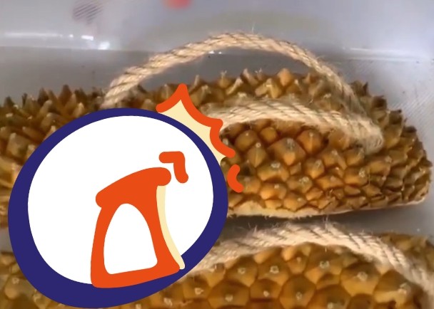綜合陸媒報導,該名男子近日用榴槤殼做成拖鞋,並分享製作的過程,他先用紙板量度鞋子的尺寸,再將榴槤殼按照紙板的大小剪好,用麻繩固定在上面,做成人字拖。