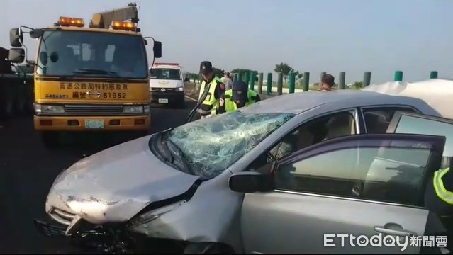 ▲國道一號嘉義民雄段22日上午發生一起追撞事故。(圖/記者翁伊森翻攝,下同)