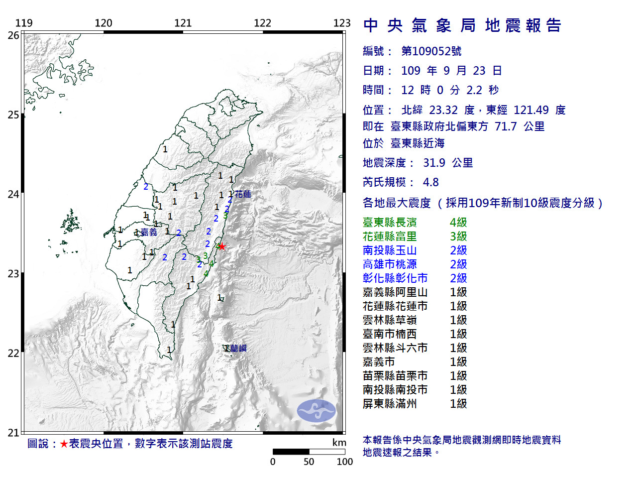 發震時間:109年09月23日12時00分02秒
