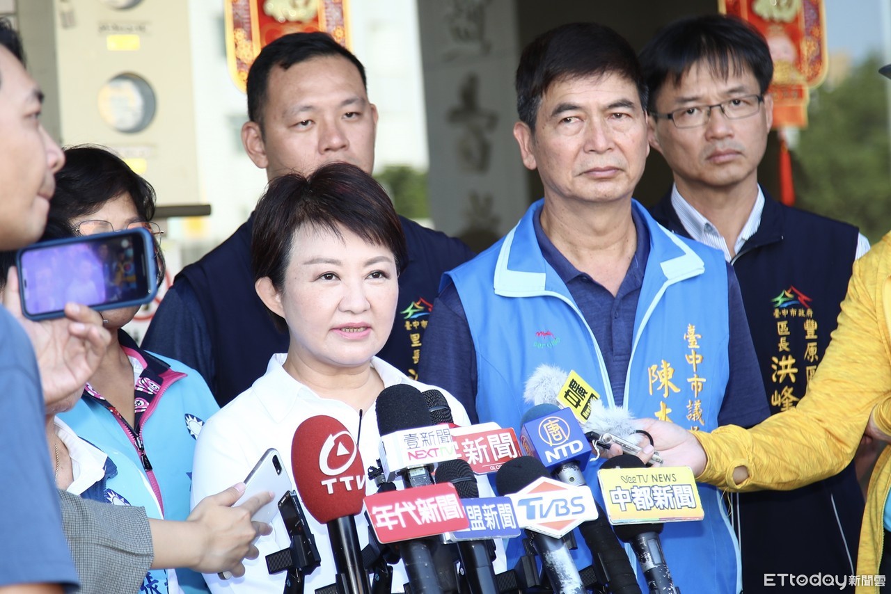 ▲盧秀燕表示,既然法務部長親自來電,展現誠意,她願意接受新任政風處長詹政曇(下右)這項人事案。(圖/記者鄧木卿攝)