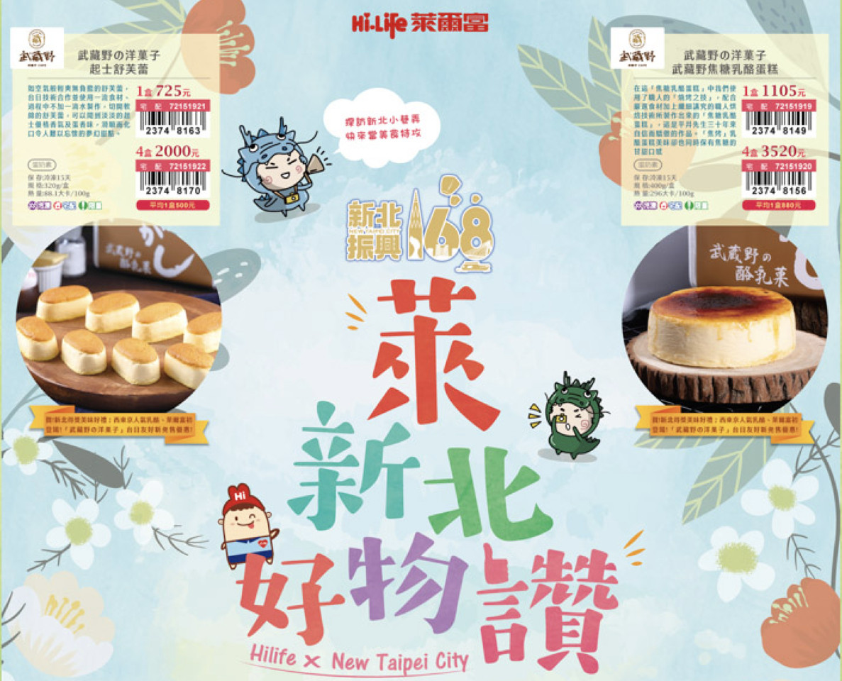 經發局長何怡明表示,在後疫情時代外送平台及超商賣場皆獲得不錯佳績,為鼓勵大家支持新北業者,透過不同模式讓大家能更便利的消費,新北市在超商合作上,日前7-Eleven推出「新北嚴選專區」,上架的有黑師傅福源花生醬捲心酥、小潘鳳凰酥、筷子肉干等多項商品。萊爾富則推出「萊新北好物讚」預購DM,於全台萊爾富門市即可搶先訂購起士舒芙蕾、乳酪蛋糕、牛奶千層冰心泡芙、東京野莓可可等11款新北伴手禮,讓大家就近即可購買新北特色商品,未來還有許多超商賣場將陸續推出新北專區,歡迎民眾用行動力支持新北特色美食與商品。
