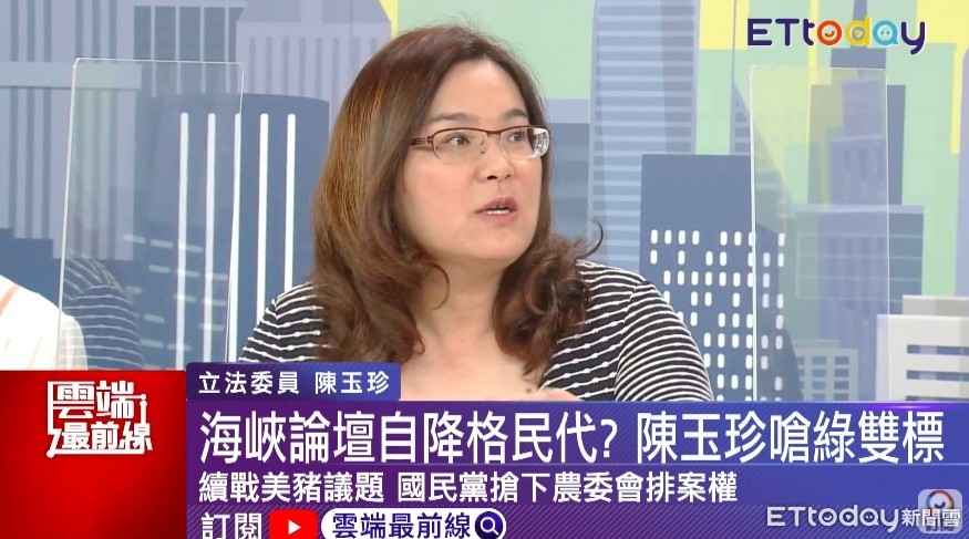 主持人詢問,頭銜是否矮化中華民國立法委員?陳玉珍直回「我是不接受這個邏輯」。她並說,大家可能跟自己處的環境不一樣,所以不理解,「我甚至還可以公開說,如果沒有隔離、開議,我也會去參加海峽論壇」。
