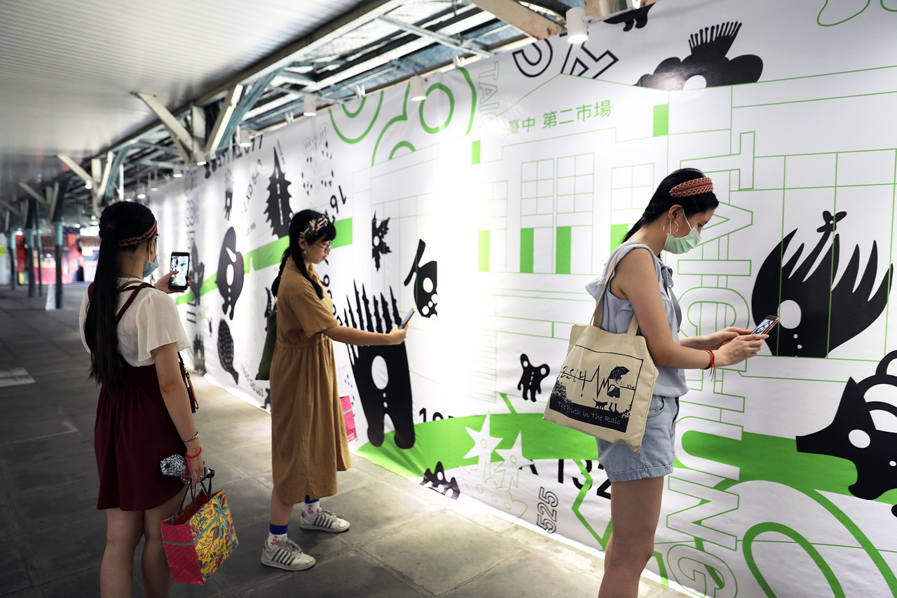 文化局表示,所有的裝置藝術中,最吸睛的莫過於網美必拍的鈴蘭冰果室,插畫家黃琬婷以手繪方式將臺中特有的豐仁冰、冷凍芋與蜜豆冰等經典冰品,重現在這臺中專屬的生活記憶空間。