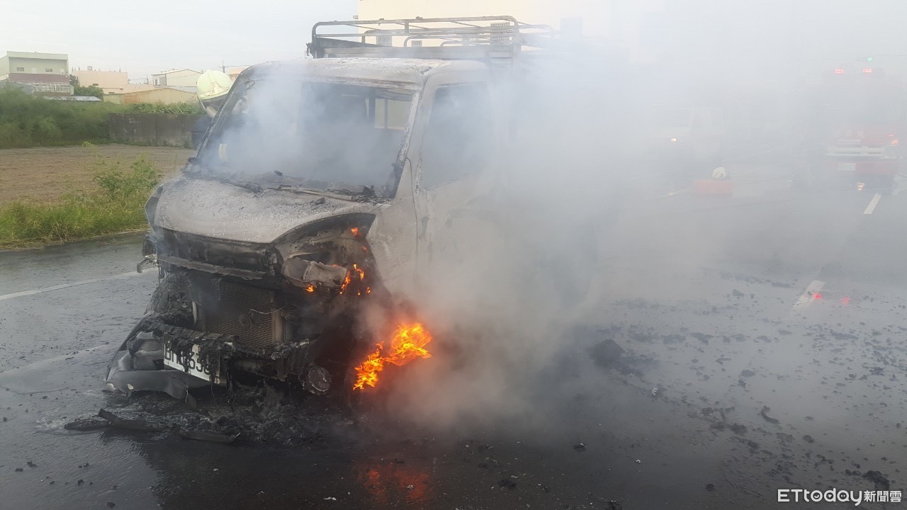 據了解,這輛貨車要趕去黃昏夜市擺攤,後車斗內載著2大鍋臭豆腐跟麵線糊,為了到達現場後能即刻給消費客人食用,鍋子下方還擺著熄火不久的爐具,車輛行進中,疑似炸臭豆腐的油溫度過高溢出滲入爐具內,才會引發火勢。