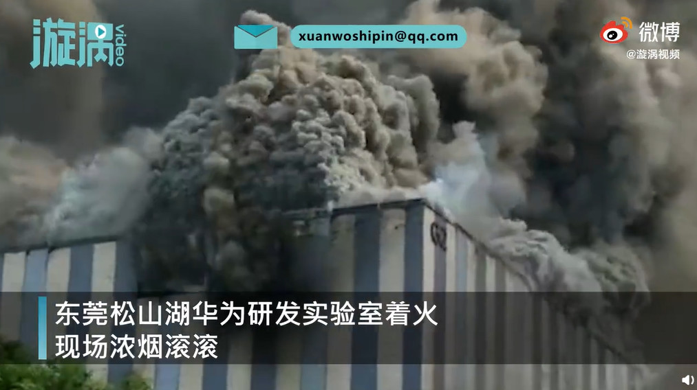 華為(Huawei)於東莞松山湖的一處建築今(25)日下午驚傳火警,現場濃煙直竄天際,火勢相當兇猛。警消趕抵現場急救火,火勢也於下午4時50分撲滅。東莞消防表示,起火建築為鋼架結構,主要燃燒物質為「吸音棉」,沒有人員傷亡。