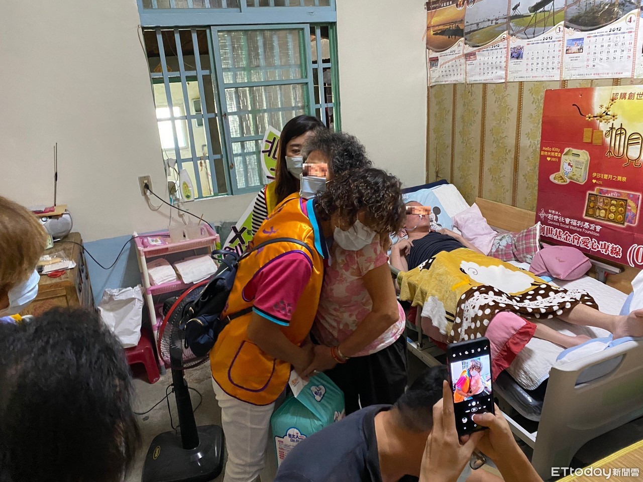 雲林縣議員黃美蘭、北英獅子會長陳寶貴偕同王秀卿、陳彩霞、鄭彩玲等獅姊,日前參加創世基金會到宅服務團隊,抵雲林縣口湖鄉洪家服務,陳會長等人輕輕握著著躺在病榻的洪媽媽兒子的手,幫忙修剪指甲並為乾燥脫屑的四肢塗抹乳液,也一邊聽年近七旬的洪媽媽,多年來所承受的苦。