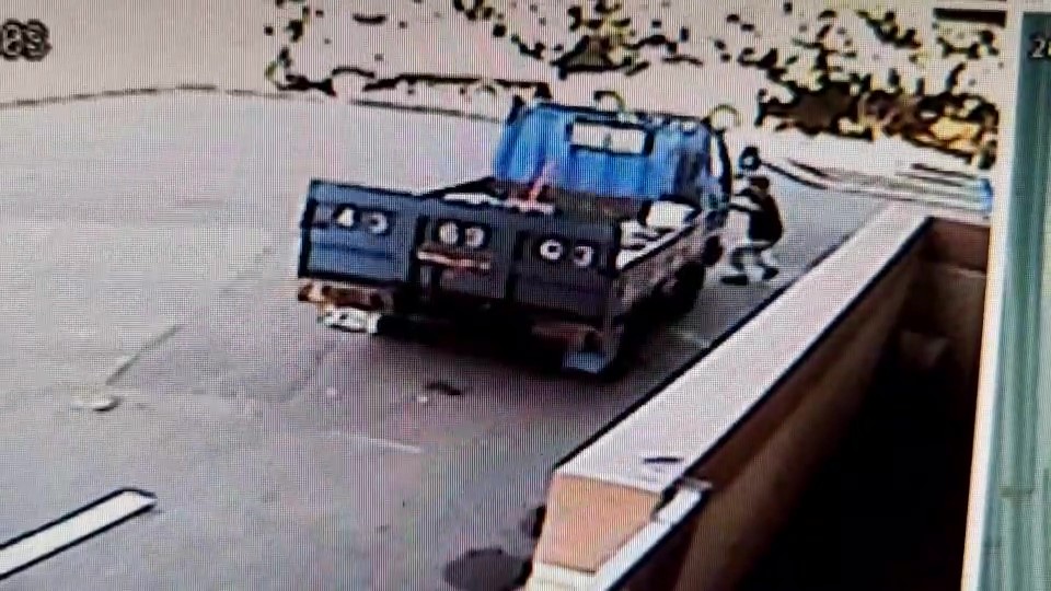 陳姓男子前天早上7點多,帶著員工到朋友家借工具,陳男下車後,穿黃色衣服的員工也跟著下車,不料過了大約半分鐘,貨車突然滑行,工廠1名友人見狀,趕緊衝到車頭,企圖以雙手阻擋,但貨車重達3.5噸,擋也擋不住,最後放棄,任由滑行。