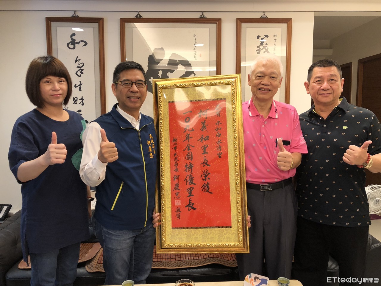▲新北市民政局長柯慶忠親自前往永和區贈匾致賀,感謝里長「柯義和」的付出。(圖/新北市民政局提供,下同)