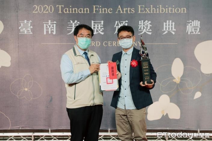 ▲「2020年台南美展」得獎者頒獎典禮,由台南市長黃偉哲頒贈得獎獎盃、證書及獎金予得獎者,表達高度肯定與誠摯祝賀。(圖/記者林悅翻攝,下同)