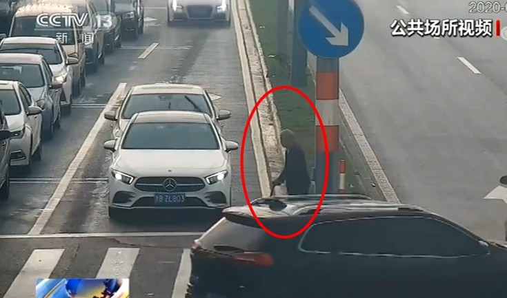 見老人還在緩慢行走,一輛白色賓士車主也停下,「我是第一輛車的車主,車快到斑馬線的時候,我看了一下馬路對面有一個老年人正在過街,我就下意識地剎車,我看了一下周邊的車輛,基本上都是一樣跟我停下來了。」其他車輛也都安靜地等候老人家過馬路,沒有人按喇叭催促。