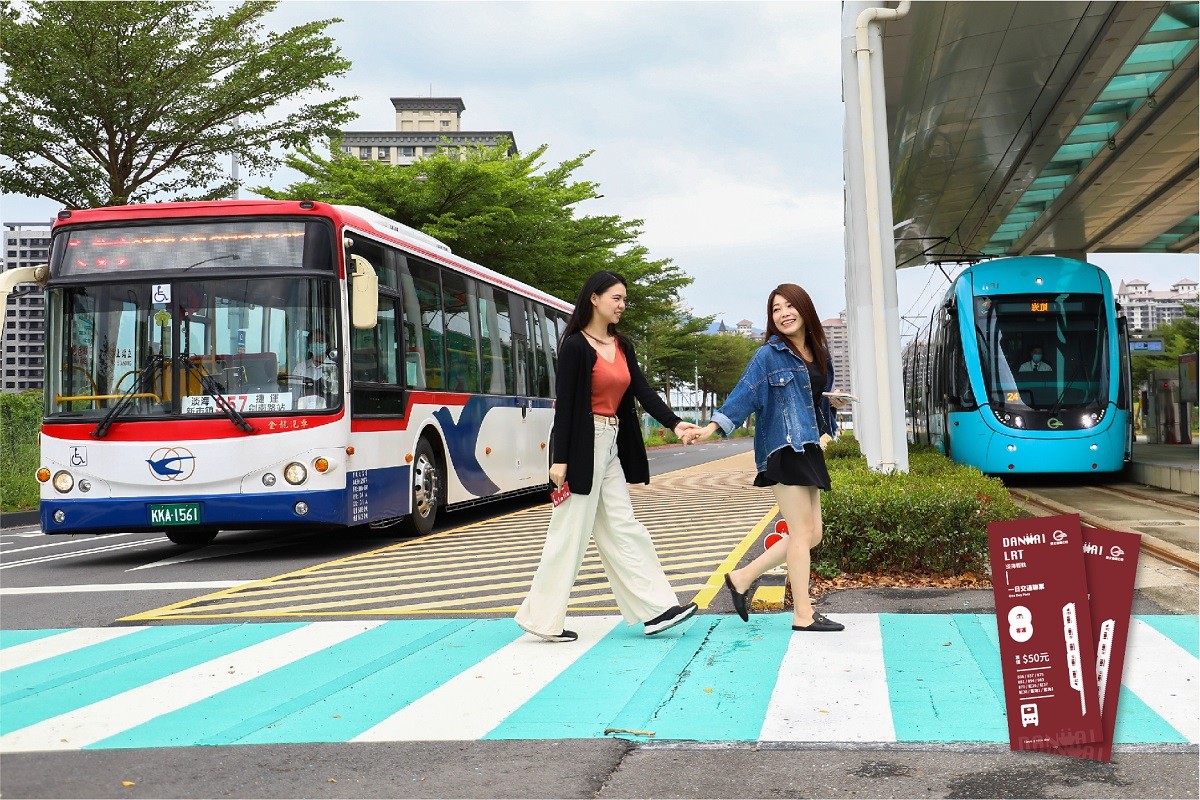 淡海輕軌與淡水客運及指南客運共12條公車路線連結,聯合推出淡海輕軌「一日交通聯票」,優惠票價50元,限當日使用,自10月1日中秋連假起於輕軌紅樹林站售票處及捷運淡水站外的遊客服務中心正式對外販售,民眾也可於網站線上預購至現場取票,購買聯票同樣享有原一日券優惠圈內36家商家提供的商家優惠,歡迎民眾一同來淡海吃喝玩樂。