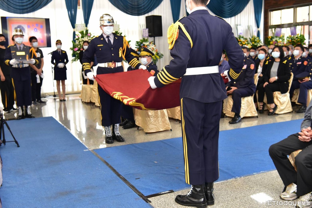 ▲警員呂進全遭槍擊成植物人,父母悉心照料23年仍殉職,1日舉辦告別式警旗覆棺。(圖/記者邱中岳翻攝)