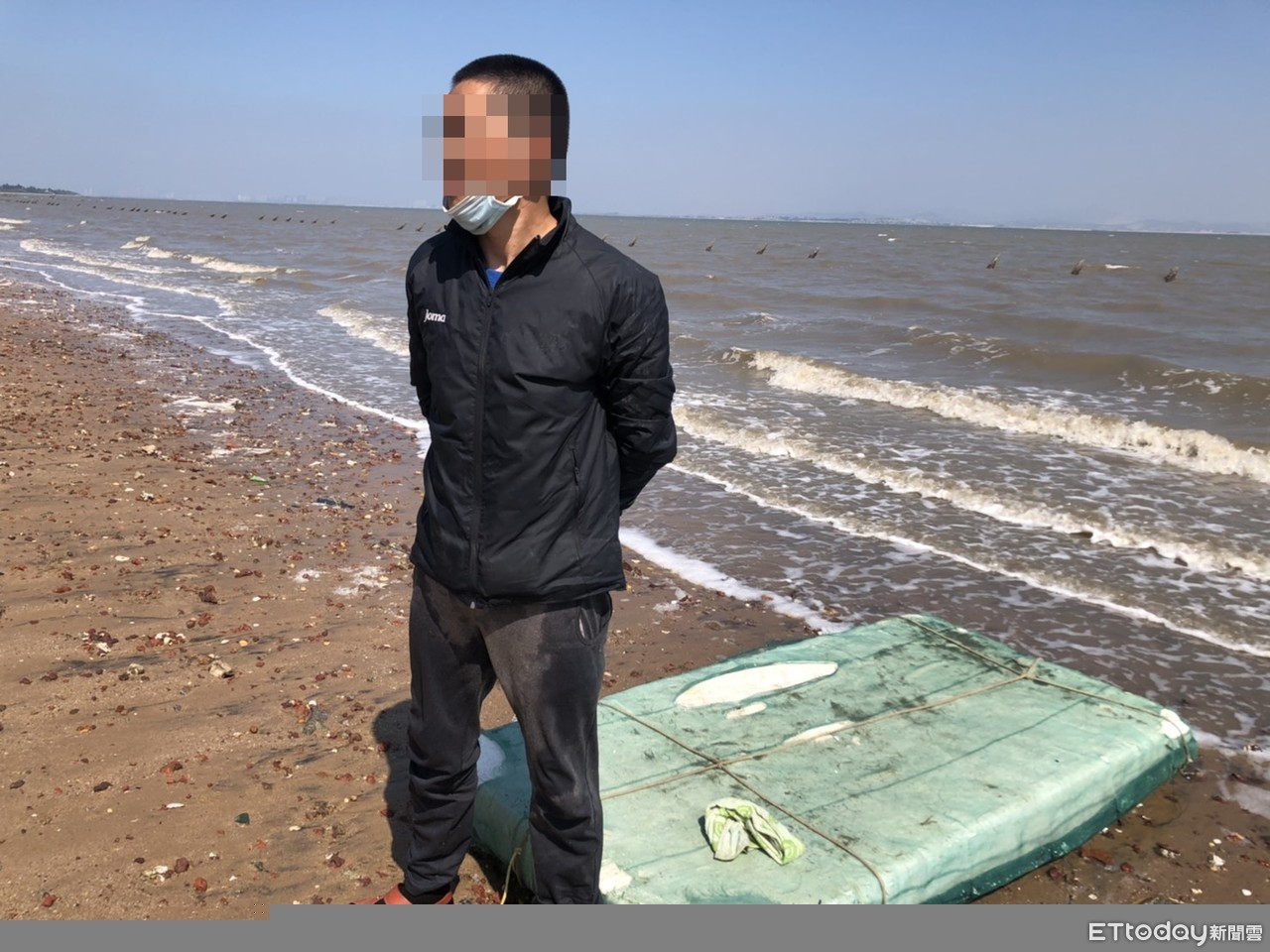 海巡署金馬澎分署第九(金門)岸巡隊隊2日上午9時40分許,於岸際發現1名陸籍泅渡偷渡犯,即調派岸、海機動人力前往現場進行查察,成功緝獲一名非法入境大陸籍男子,他以藍色泳圈、乘坐保麗龍片使用划槳方式偷渡到金寧鄉嚨口海域,沒想到該偷渡客上岸後體溫高達39.1度,緊急送往檢疫站,快篩結果為陰性。