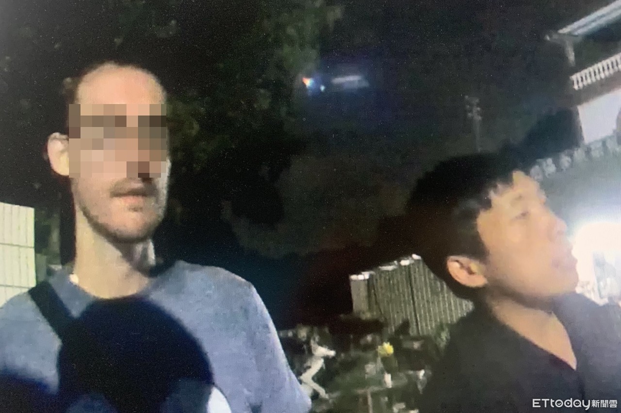 ▲竹東員警李柏寬(右)與當地居民合力,一起協助美國男返家。