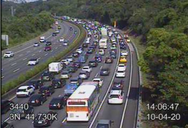 中秋連假最後一天,國5北返頭城-坪林行控路段早上就開始塞,高公局預估國5的車流將到晚間六點才會紓解,而國3下午1點多,北上三鶯至土城段發生一起車禍,導致北返車流全擠在這邊,車道瞬間從四線導變兩線道,事故一直到國道警和吊車抵達處理過後,才會恢通暢,高公局下午4點最新說明。