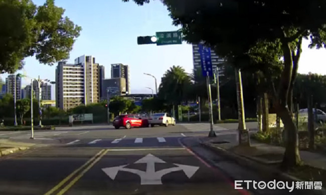 ▲紅色自小客車因闖紅燈撞上銀色自小客車。(圖/記者楊熾興翻攝)