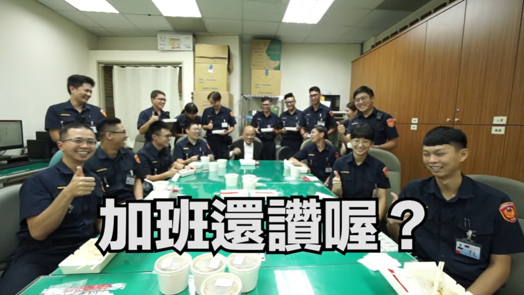 蘇貞昌一進政院員警的辦公處,就大喊「緊咧!鼎泰豐誒!大家都有,一人一份」,除了親切問候員警們平常都在哪吃飯,坐下來後也關心椅子夠不夠?怕大家坐不下。行政院留守人員共有40人,且大多年輕人,蘇貞昌特別交代多買一些,希望大家都能吃飽。