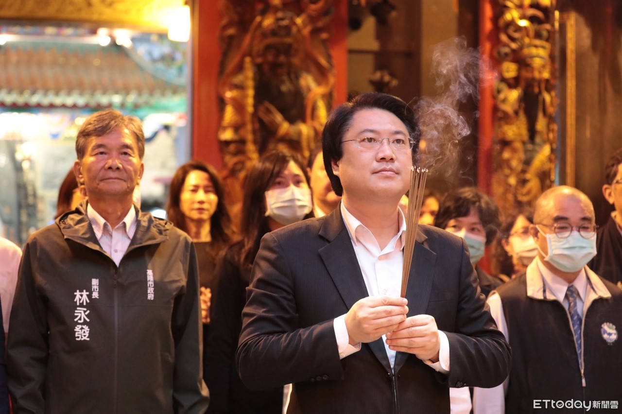 ▲林右昌關切國慶晚會籌備進度,基隆慶安宮祈求活動圓滿順利。(圖/基隆市政府提供,下同)