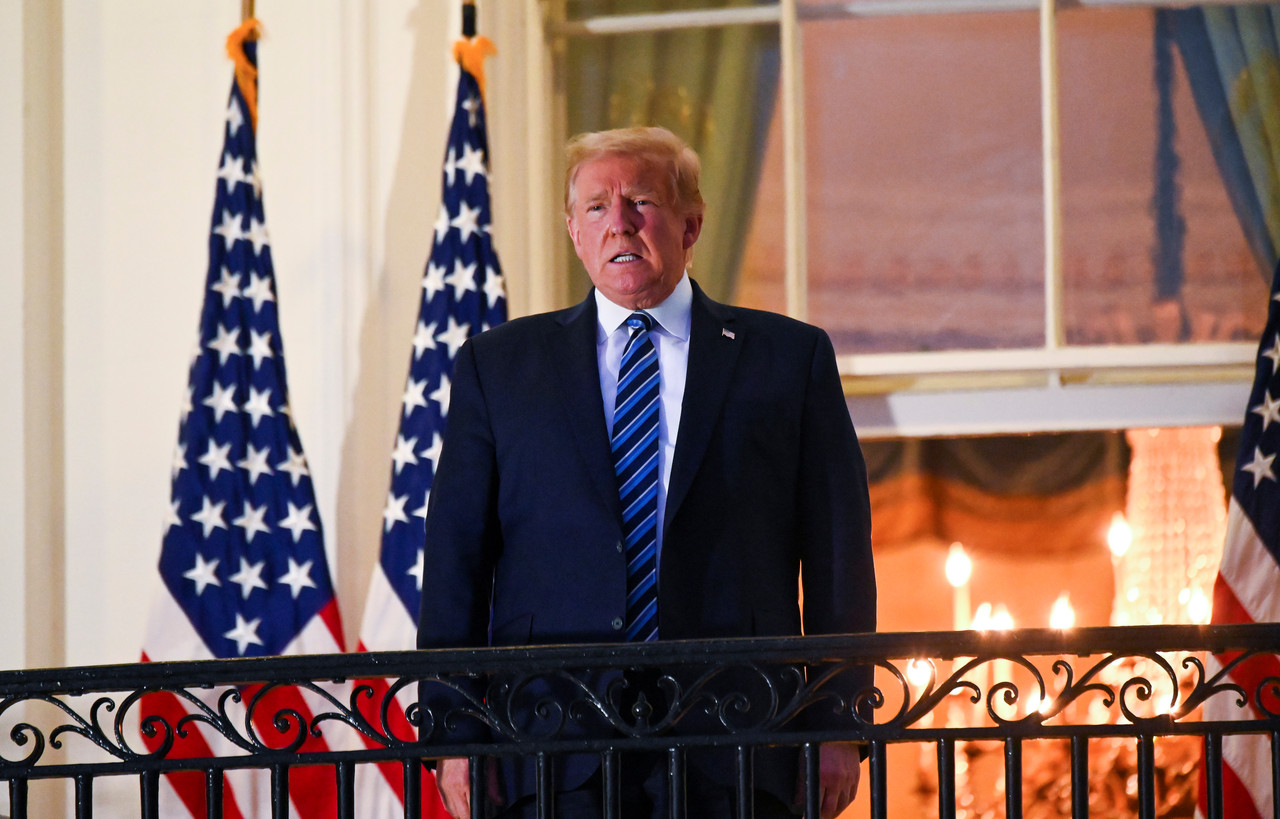 綜合外電報導,川普已離開沃爾特里德國家軍事醫學中心(Walter Reed Medical Center),搭乘「陸戰隊一號」(Marine One)直升座機返回白宮。他與隨行人員均無穿戴防護服與用具,僅佩戴口罩,下機後他除下口罩,獨力從草坪走上台間,在白宮前陽台向媒體揮手致意,供各家擺拍,隨後便進入官邸。