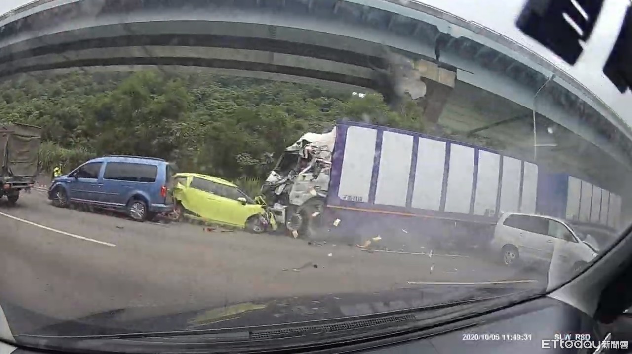 ▲後方聯結車未注意路況,一路推擠追撞,釀成連環車禍事故。(圖/記者陳以昇翻攝)