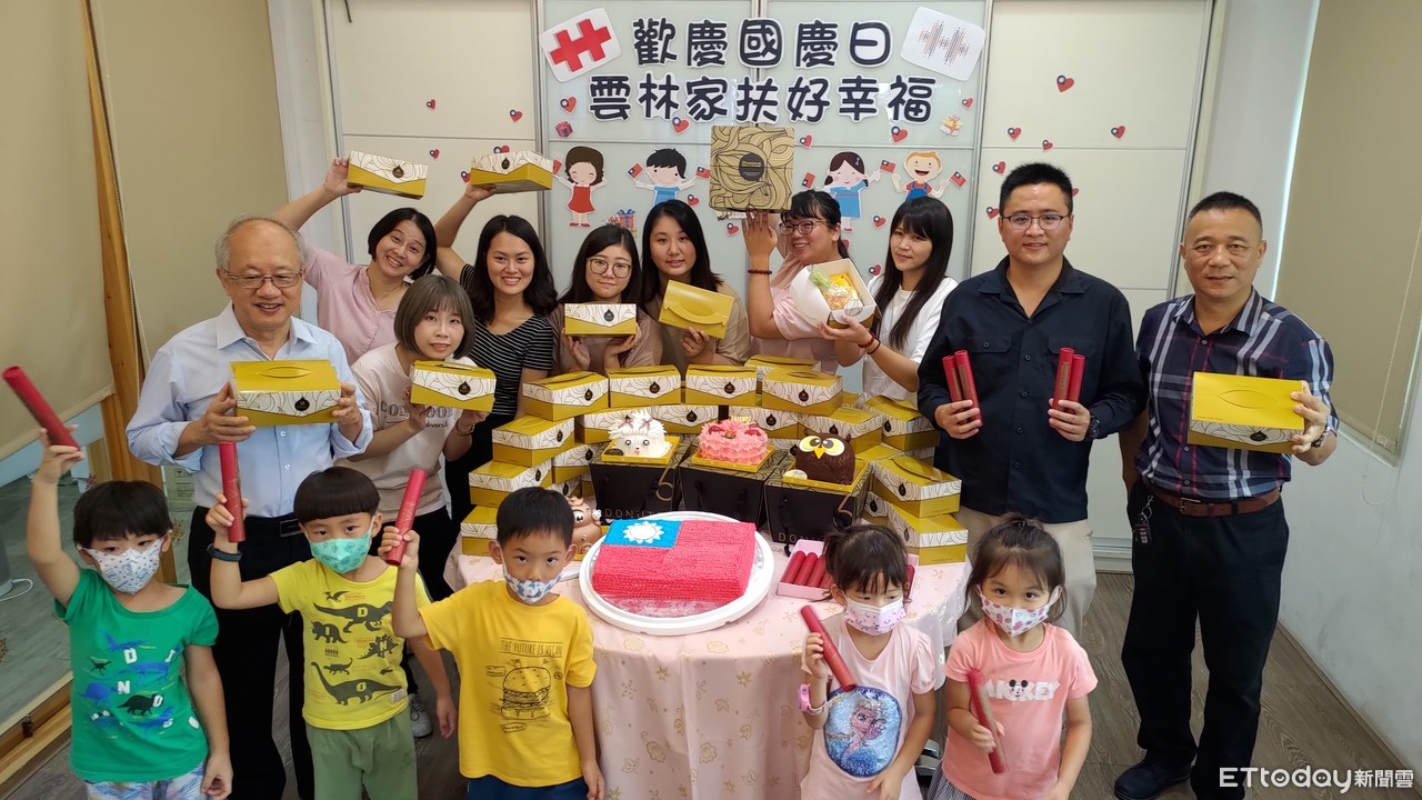 在光輝十月國家生日前夕,多那之斗六棒球旗艦店經理洪培訓帶著一個青天白日滿地紅國旗蛋糕,還有黃金獅子、WOO貓頭鷹、馬爾濟斯、便便王及天使心等五個動物造型蛋糕,還有100盒的愛心餐點、文具贈予家扶中心,共同與環球幼兒園的小朋友高唱生日快樂分享。