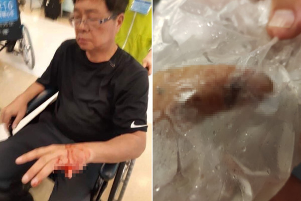 ▲陳姓退役上校2年前參加八百壯士反年改抗議時,遭油壓剪剪斷小指。(資料照/記者陳豐德攝、翻攝)