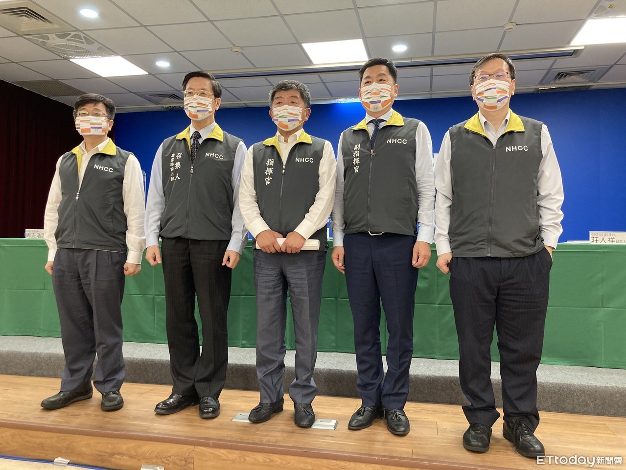 指揮中心副指揮官陳宗彥同時也是內政部次長,本次國慶活動他也擔任籌備要角,今特別帶了做好的國慶口罩到指揮中心記者會現場,讓陳時中和防疫五月天的成員都換上國慶口罩,為記者會增添亮點。