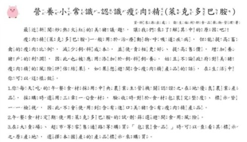 「營養小常識-認識瘦肉精(萊克多巴胺)」