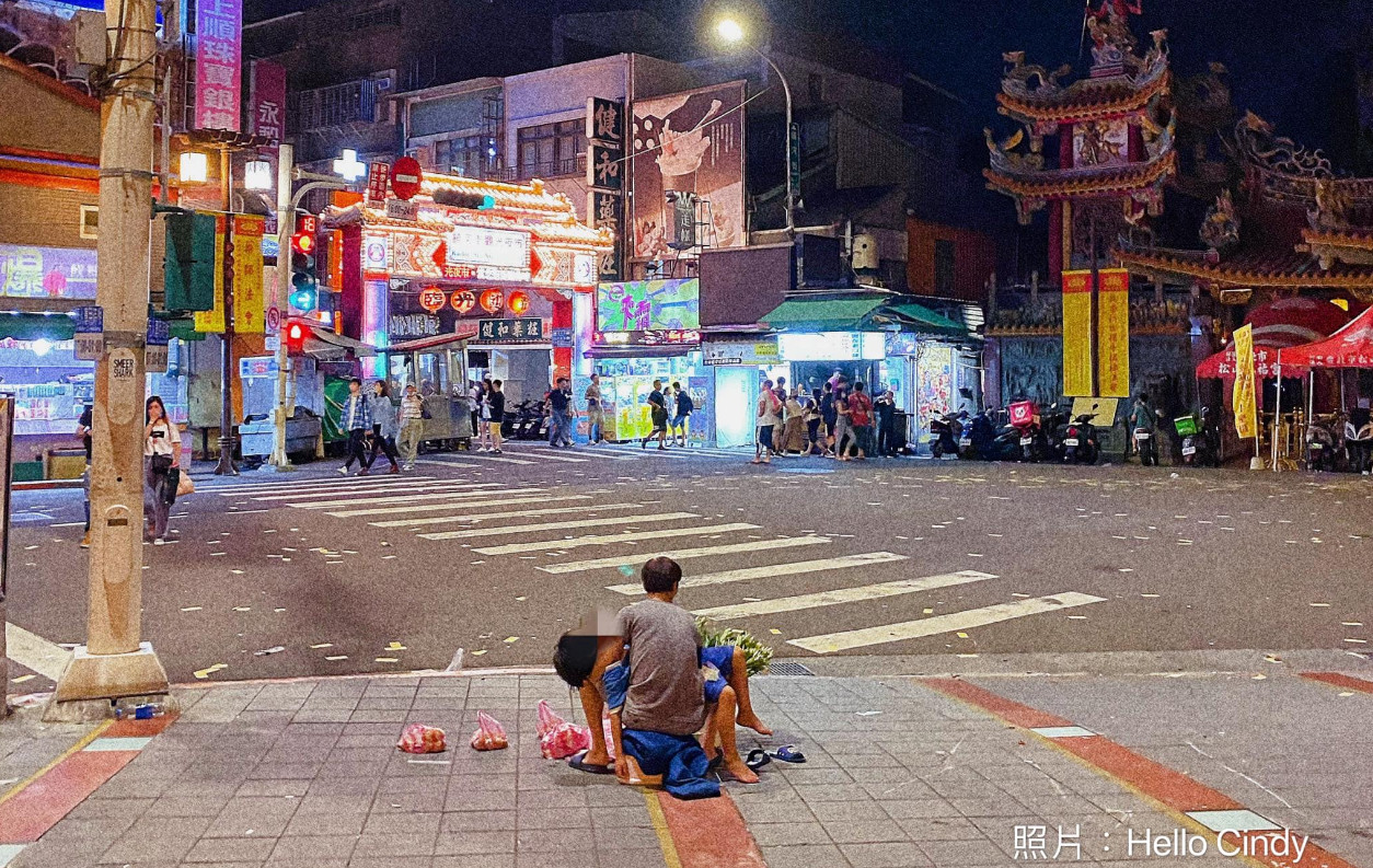 服飾店老闆娘4日在臉書發文表示,她連假期間到饒河夜市逛街,連續2天碰到一家人在地上擺攤,其中男子坐輪椅行動不便,還有一名國小女童、男童輪流顧攤,但街上人來人往,卻鮮少有人駐足光顧,最終男童累倒躺在男子懷中,直到警察凌晨1點前來驅趕,才落寞離去。