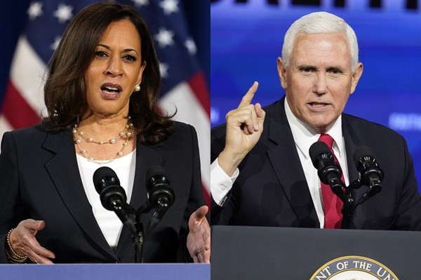▲民主黨副總統候選人賀錦麗與副總統彭斯。(組圖/達志影像/美聯社)