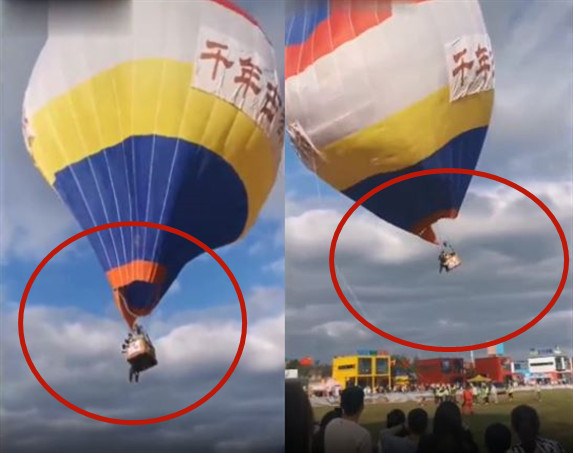 據《第一新聞》報導,影片畫面中,一人掛在熱氣球的框子外,被帶上半空。爆料者稱,當時工作人員在充熱氣球,還沒充好熱氣球就意外飛了,工作人員在上邊差點掉下來,幸運的是沒有人傷亡。