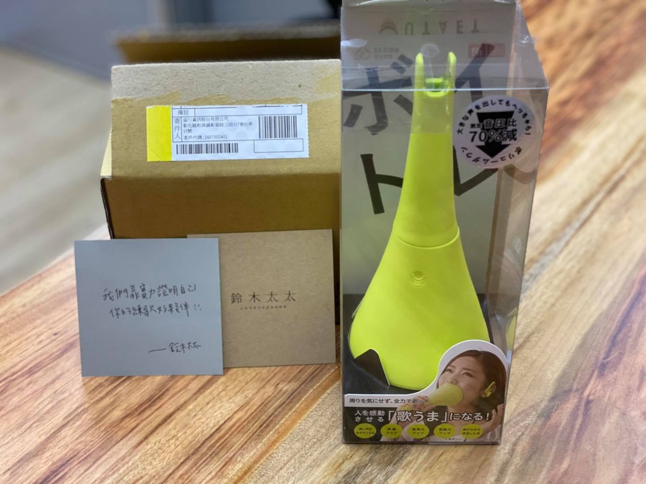 今天她的歌聲又再度成為話題,高嘉瑜8日在臉書PO出收到的禮物照片,是一個「歌聲消音器」,可以看到旁邊卡片寫下「我們靠實力證明自己,妳的練歌好夥伴」。