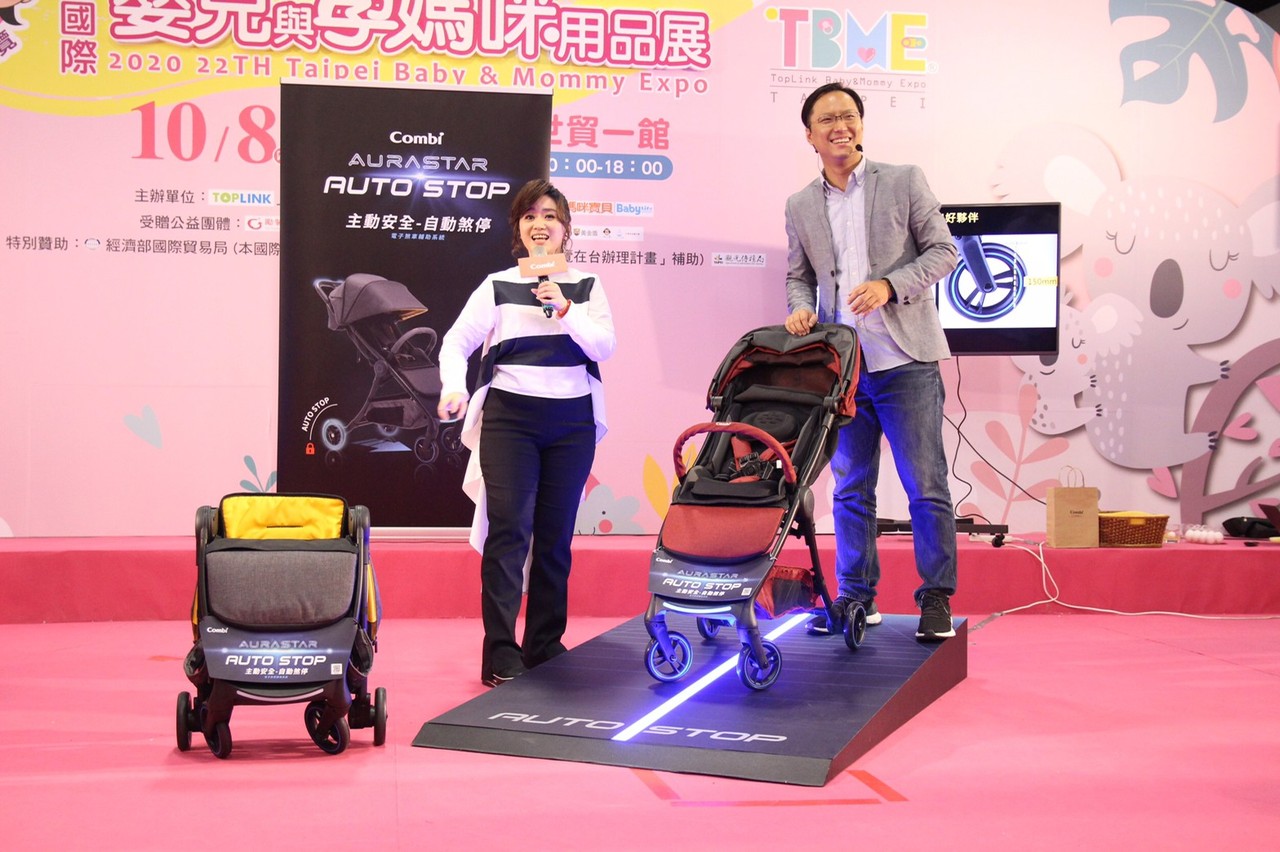 2020台北國際母嬰展盛大登場,開幕首日吸引許多新手爸媽前來挖寶,日本知名童嬰品牌Combi舉辦科技手推車發表會,特別邀請東森知名購物專家玉雙擔任主持人,介紹充滿科技感的智慧手推車Aura Star,主打「主動安全、自動煞停」,還能三秒內快速收車,可說是守護寶寶行的最佳神隊友!Combi祭出多重消費滿額禮,持有東森網連通聯名卡的卡友,更享有專屬消費禮,10月8日~8月11日到台北國際母嬰展搶優惠,買好買滿又不傷荷包。
