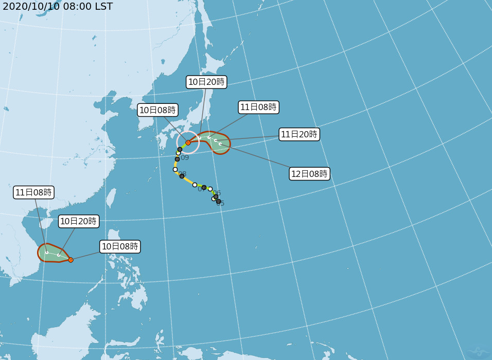 「台灣颱風論壇|天氣特急」指出,另外位於菲律賓東方有個小低壓系統,逐漸往西移動,是否進一步增強仍待觀察。這個低壓明天(11)通過呂宋島或巴士海峽,周一(12日)就會進入南海北部,然後繼續往中國海南島附近前進。