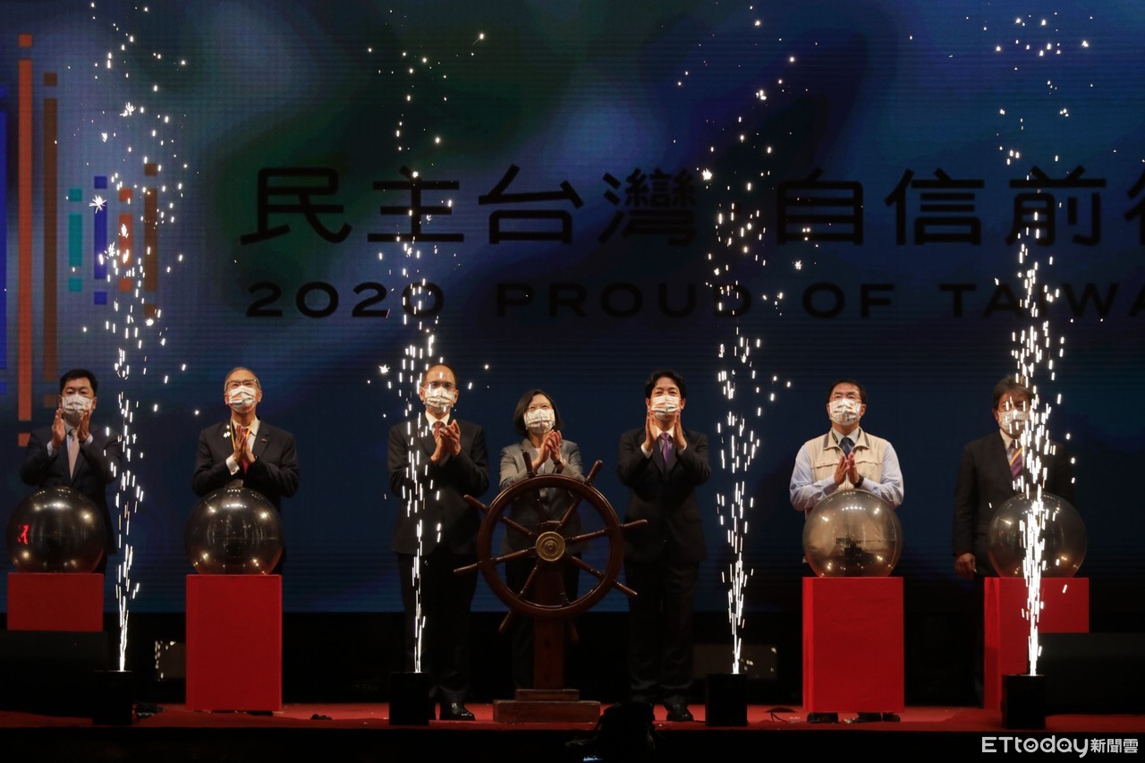 ▲國慶焰火在台南安平漁光島施放,吸引超過42萬名民眾在現場觀看,蔡英文總統、賴清德副總統、台南市長黃偉哲,以及立法院游錫堃院長共同按鈕啟動這場國慶煙火秀。(圖/記者林悅翻攝,下同)