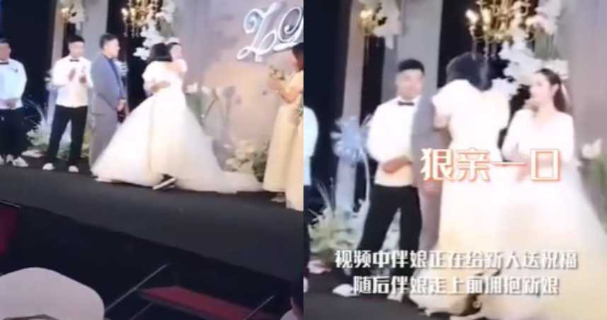 ▲伴娘前一秒還在祝福閨密,接著竟突然強吻新郎。(圖/翻攝自微博)