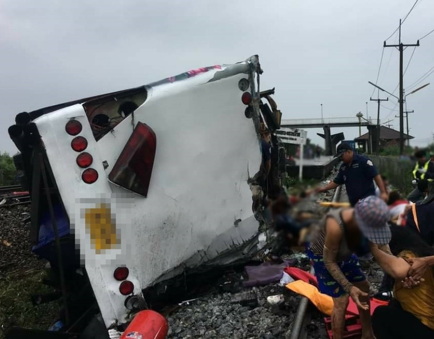 泰國11日發生火車撞觀光巴士的意外事件,根據當地政府的最新統計,至少造成20人死亡,30多人受傷。外傳巴士內部有多具遺體,根據當地媒體稍早消息,官員仍無法把大多數遺體運離現場。