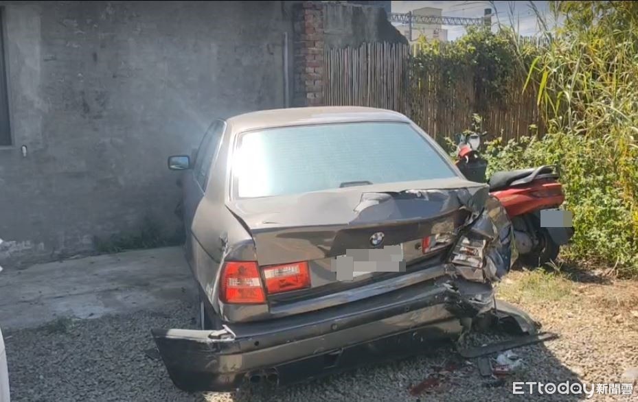 ▲徐男酒駕失控撞上路邊停放的3台小客車,其中還有一台BMW。(圖/記者黃孟珍翻攝,下同)