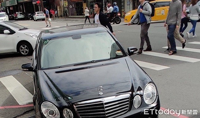 ▲民眾質疑賓士車違停耍特權。(圖/翻攝FB「桃園人桃園事.生活.分享.靠北討論區」)