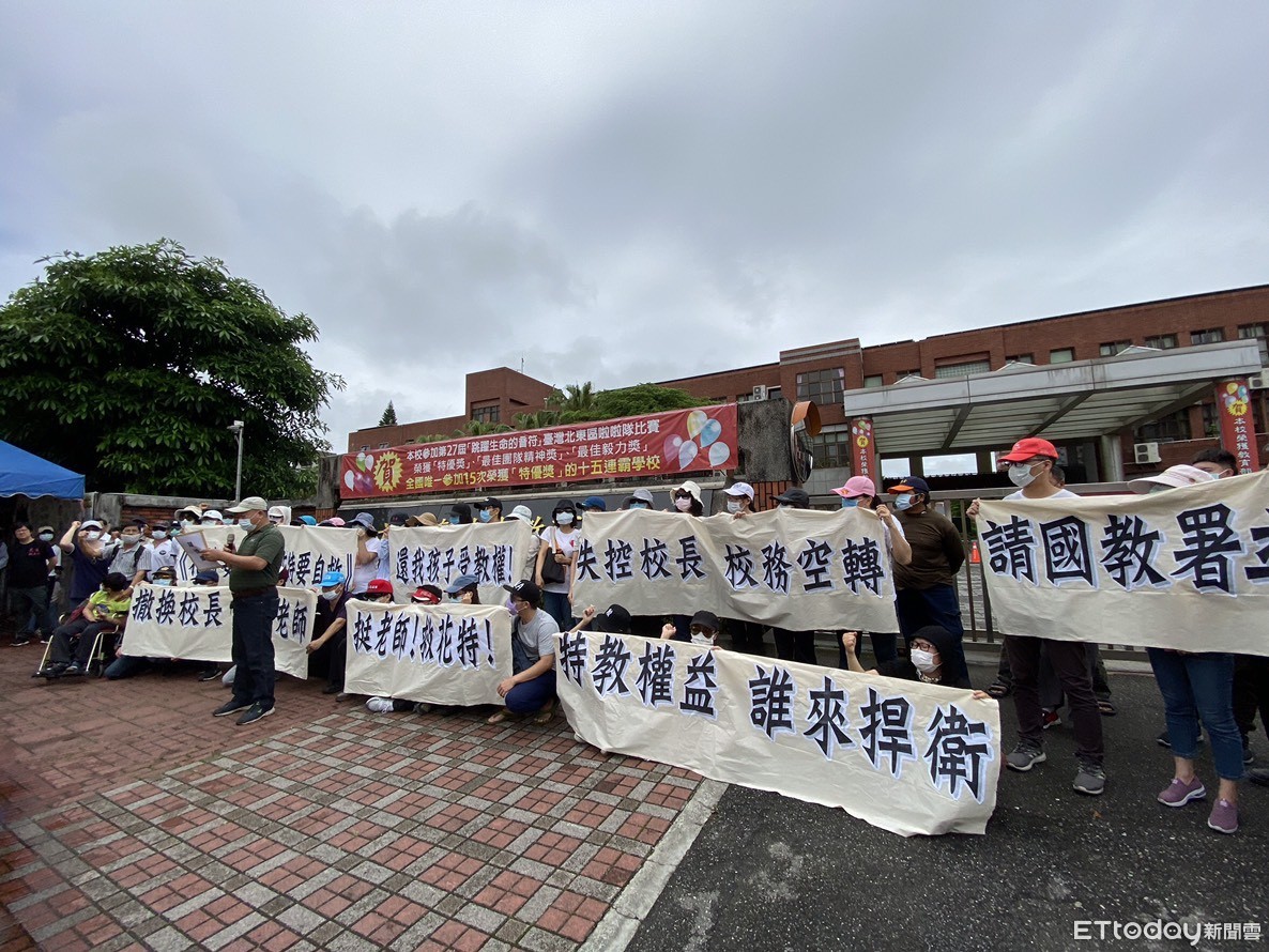 ▲今年5月時,近百名學生家長及老師聚集校門表達抗議。(圖/記者王兆麟攝,下同)