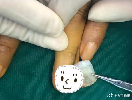 浙江大學醫學院附屬第一醫院骨科盧薈副主任醫師近日在朋友圈發了一張「看上去就非常痛」的圖片,照片中,患者左手無名指的指甲蓋翻起,露出白白的甲床;醫生還從甲床上切下了一個0.8公分長0.5公分寬的腫塊,最終確診為已經中分化的鱗狀細胞癌。好好的甲床上怎麼會長出鱗狀細胞癌呢?這還得從患者手指上的一道傷口說起。