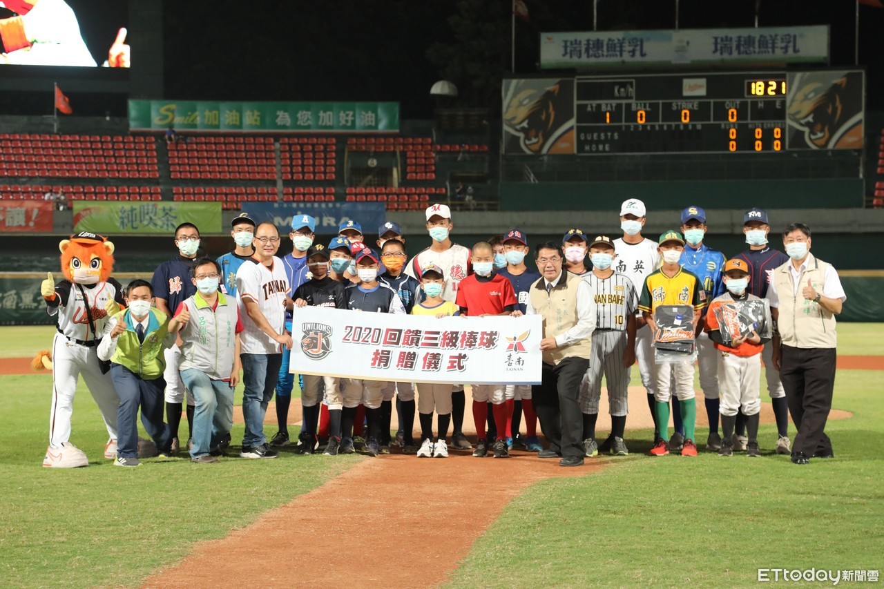 ▲統一獅邀請台南市三級棒球隊免費觀賽,並於賽前進行三級棒球回饋儀式,由市長黃偉哲帶領台南市22所棒球校隊選手們受贈,期許為棒球城市孕育更多未來新星。(圖/記者林悅翻攝,下同)
