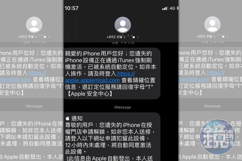 最離譜的是,不法份子先以「已經尋找到手機」的簡訊削弱失主的心防,接著就試圖模仿成蘋果官方發送「親愛的IPhone用戶您好,您遺失的Iphone設備正在通過ITunes強制刷機激活,已被系統自動定位,如非本人操作,請即時登入某個網址」的簡訊,讓失主誤以為是蘋果官方,若是不查,很容易陷入陷阱登入網址,讓不法份子輕易取得帳號和密碼。