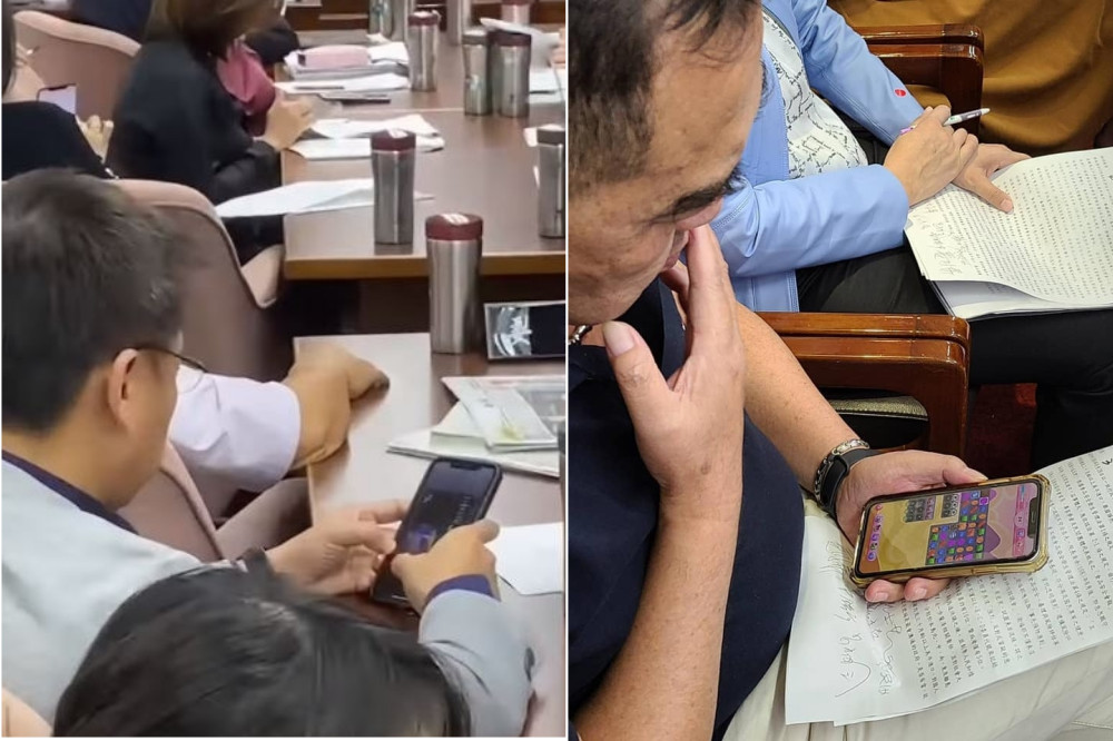 ▲趙天麟開會玩手遊。(圖/翻攝自比特王、趙天麟臉書)