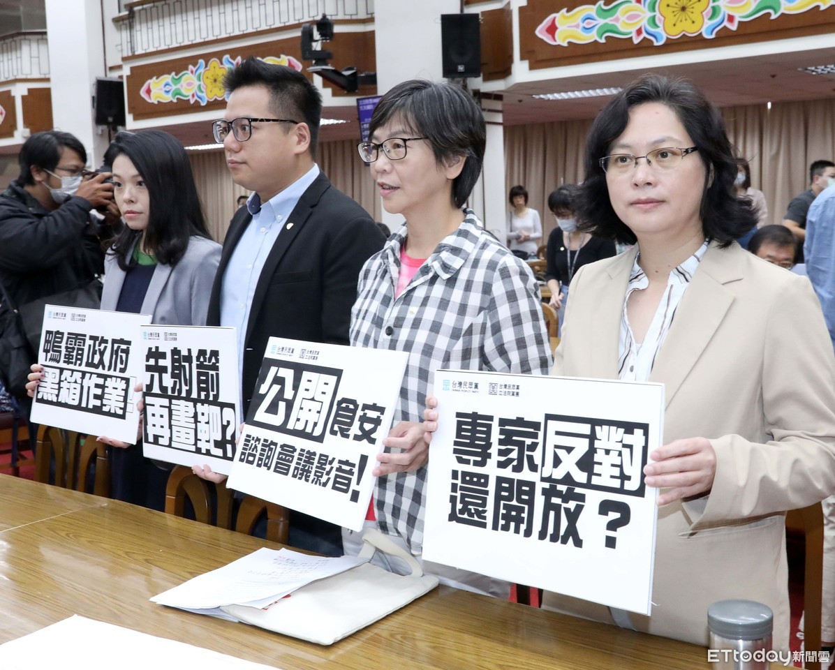 ▲社會福利及衛生環境委員會上,民眾黨立委拿自製看板抗議。(圖/記者屠惠剛攝)
