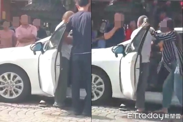 ▲男子不甘妻子與已婚男出遊,雙方在朴子配天宮前起爭執。(圖/讀者提供,下同)